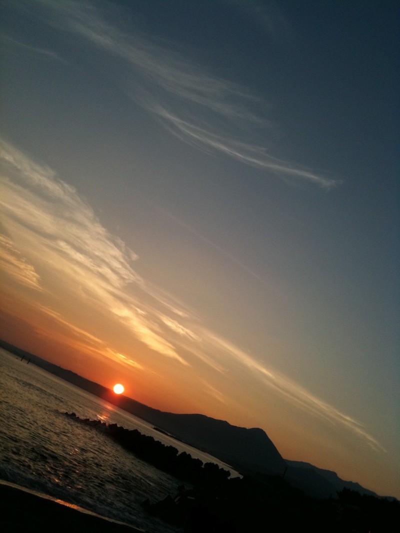 次の日は空が明るむ前に起きだして「伯耆のヒゲ爺」の異名を持つ僕の父親の案内で近くを流れる日野川の土手から歩いて皆生海岸の日の出を見に行きました。